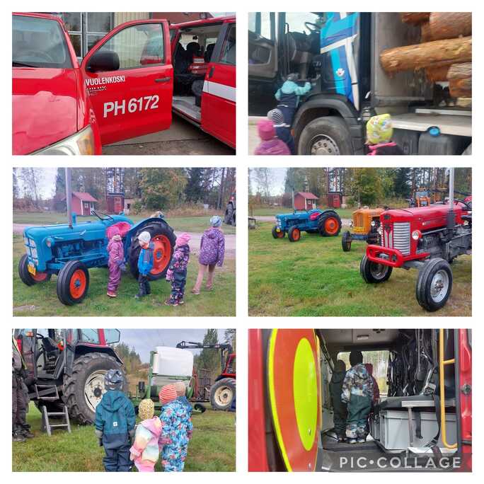 Vuolenkosken koulunmäki täyttyi tänään monenlaisista koneista, kun vietettiin päiväkoti Nuppulan ikiomia Konemessuja. Myös koululaiset pääsivät kiipeämään koneisiin, pyörittämään rattia tai käärimään paalia muoviin.