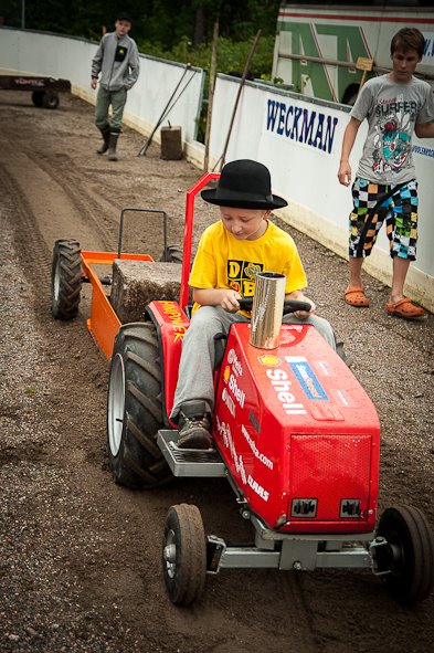 Kyllä!! Lapsille oli myös omat kisat. Edellisen kerran lastensarja oli suosituin. Värhi-minitraktori on perheen pienemmille tarkoitettu turvallinen ja tehokas ajopeli. Ihka oikealla moottorilla varustettu kone sekä oikea vetovastuskärri perässä.