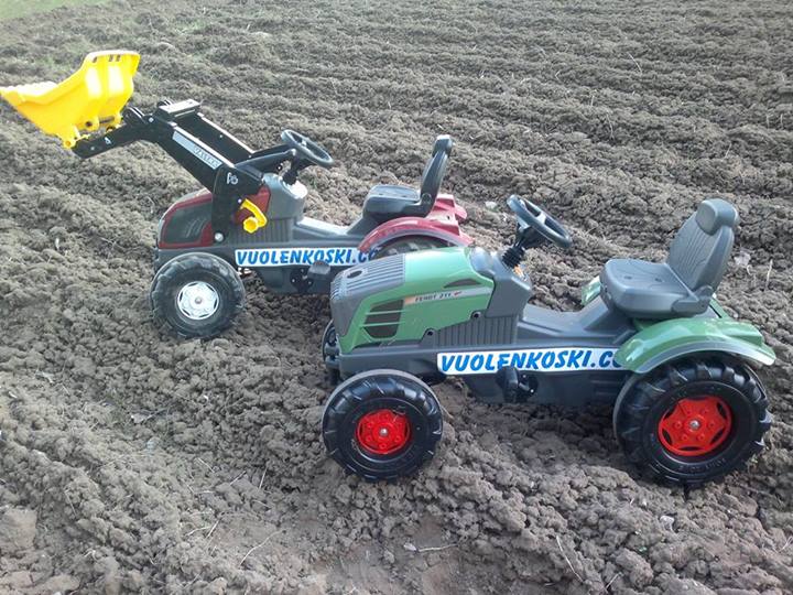 Näillä menopeleillä pääsi huristelemaan touhulandiassa mielensä mukaan. Etukuormaajalla ja kärryllä varustetut menopelit ovat tosikäyttöön tarkoitetut. Traktoreista arvottiin kisojen jälkeen kaksi.